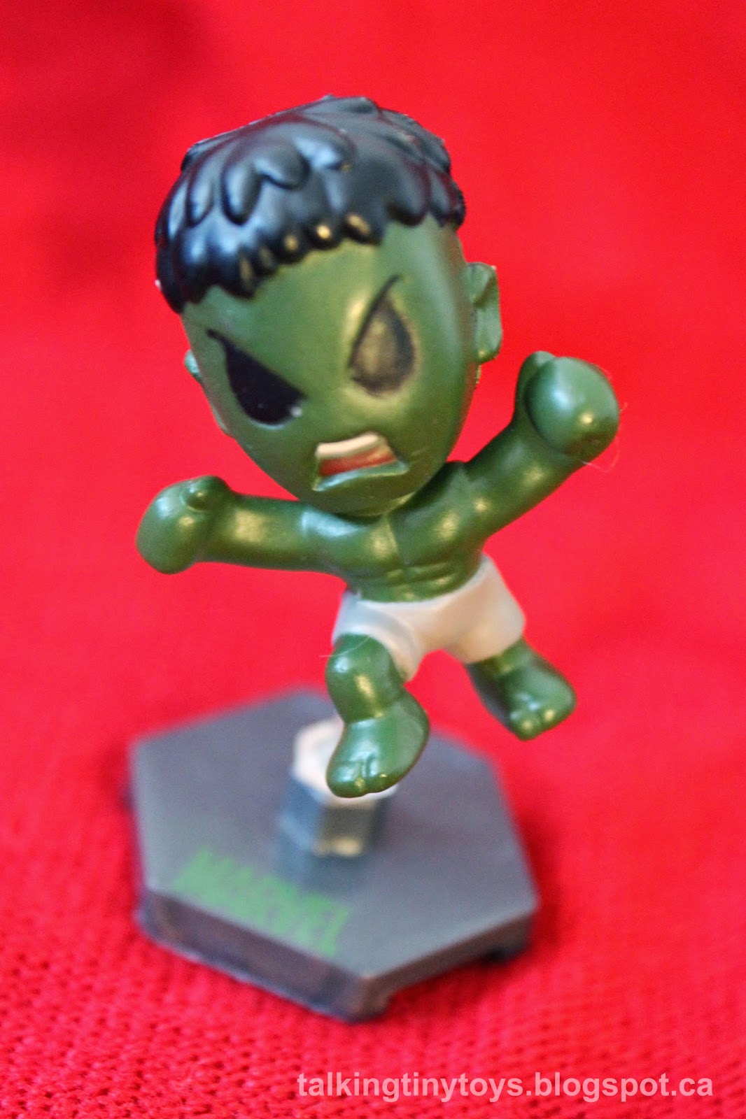 The stand allows for a few different poses, but be careful! Hulk is a little top heavy, so he'll topple if off centre too much. While I didn't find the "Ultra Rare Captain America," Hulk is nice surprise. I'd recommend these blind bags...if you can narrow your choice down to the minis. I might try again in the future. I think Hulk needs a friend.